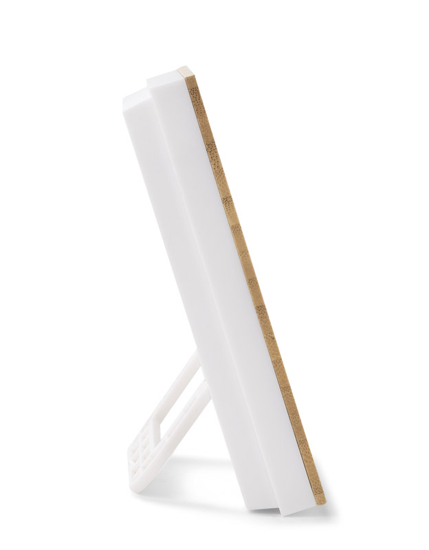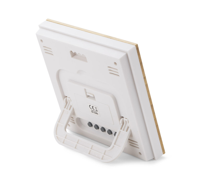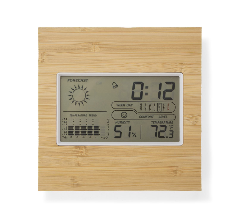 JUPITER to stacja pogody z możliwością pomiaru temperatury wewnątrz pomieszczenia. Posiada następujące funkcje: godzina, data, dzień tygodnia, temperatura wewnętrzna, wilgotność powietrza, poziom komfortu, wizualizacja pogody oraz budzik. Przód obudowy pokryty jest warstwą bambusową, co doskonale współgra z minimalistyczną stylistyką wnętrz.
