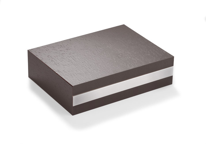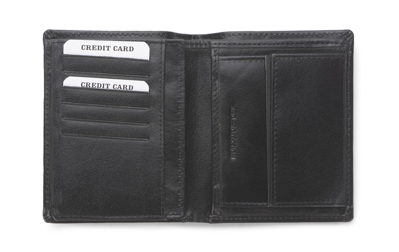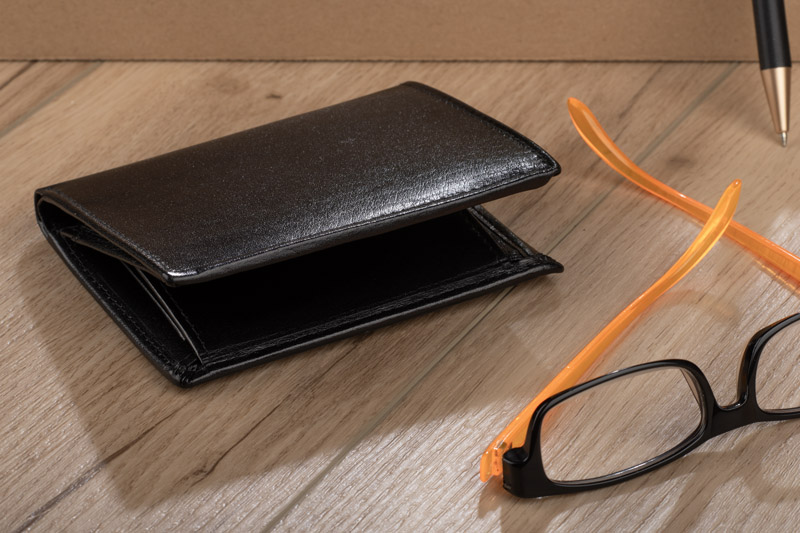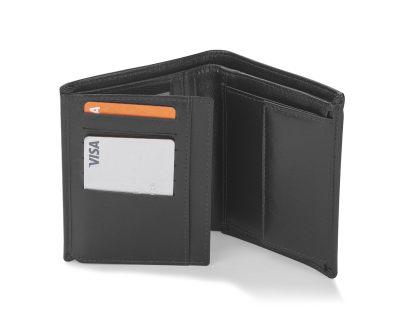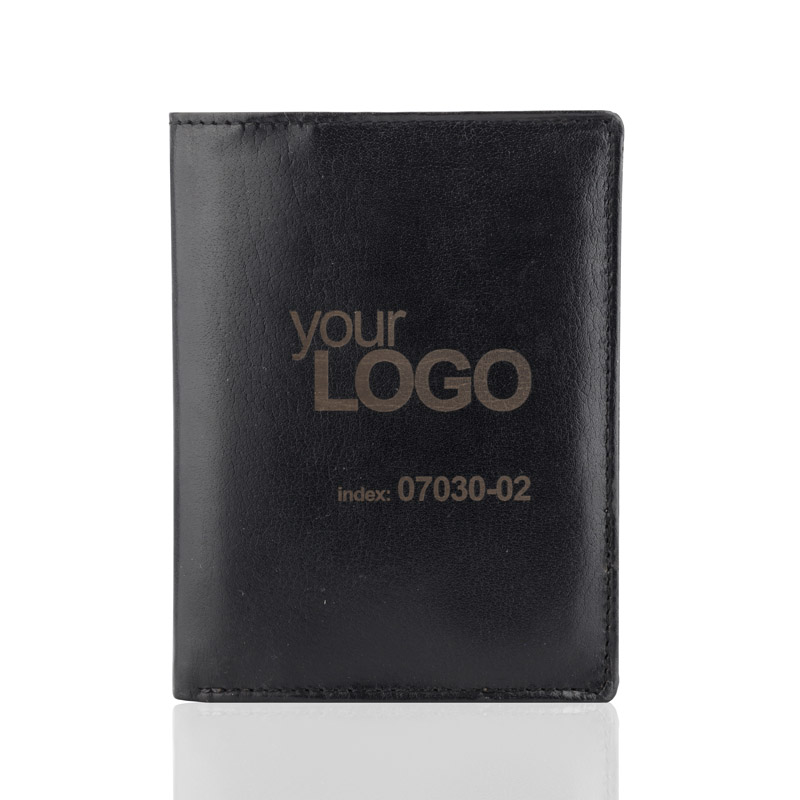 Portfel wyposażony w miejsce na bilon, 2 kieszenie na banknoty, 6 miejsc na karty kredytowe, 5 kieszeni na dokumenty. Dodatkowo został wzbogacony o folię zabezpieczającą przed kradzieżą danych z kart kredytowych, blokując sygnał RFID. Portfel pakowany w drewniane pudełko. Na portfelach wykonujemy tłoczenie lub grawer. Istnieje także możliwość wykonania graweru na pudełku.