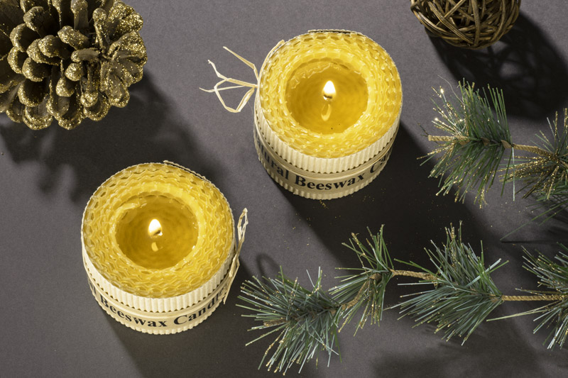 Zestaw 2 świec wykonanych z naturalnego wosku pszczelego to idealny upominek dla osób ceniących romantyczny nastrój w wersji eko. Świece spakowane w kartonik z tektury wypełniony ozdobnym siankiem ekologicznym. Każda świeca ozdobina kokardą z rafii.