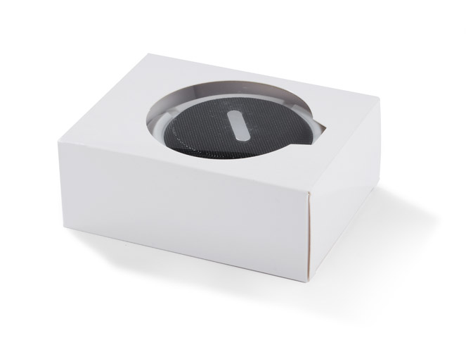 Mały głośnik z przyssawką FUSION. Świetnie nadaje się do użytku turystycznego i na co dzień np. przy lekkim deszczu. Możliwość wykorzystania głośnika jako zestawu głośnomówiącego. Odtwarzanie muzyki jest możliwe za pośrednictwem bluetooth (wersja 4.2) lub karty micro SD. W zestawie kabel do ładowania z końcówką microUSB i karabińczyk. Posiada metalową płytkę przeznaczoną do wykonania znakowania. Produkt jest zgodny z odpowiednimi dyrektywami Unii Europejskiej oraz posiada znak CE. Dane techniczne: Moc wyjściowa: 3W x 1 Napięcie: 5V Stosunek S/N: ≥ 70 dB, czas pracy: 1-1,5 godziny, pojemność baterii 300mAh