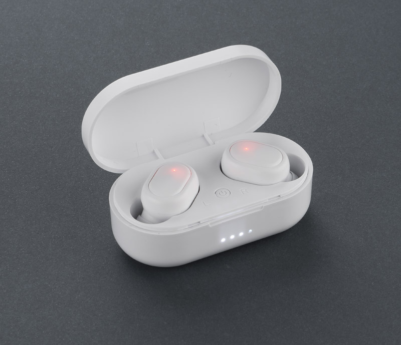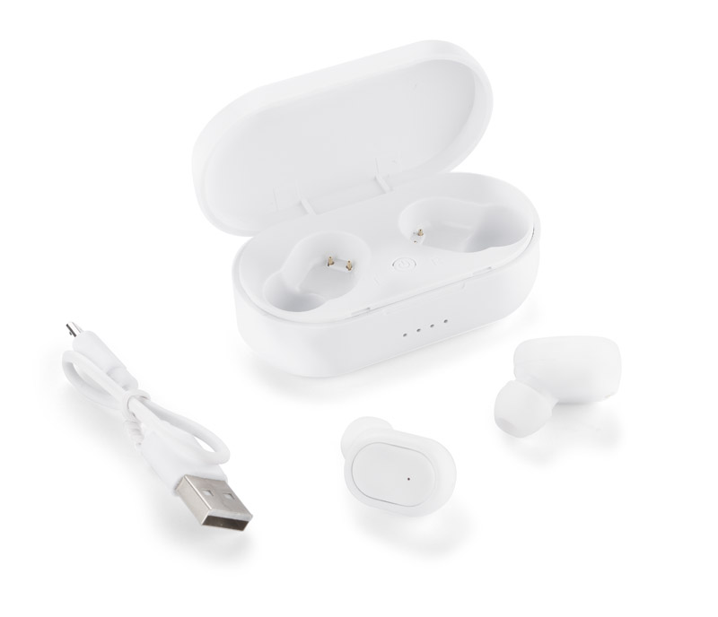 Słuchawki bezprzewodowe SONIDO wyróżniają się swoim kieszonkowym rozmiarem. Charakteryzują się bardzo dobrą jakością dźwięku, są lekkie i wygodne. Wyposażone są w stację dokującą o pojemności 350 mAh, która służy do wygodnego przechowywania oraz ładowania słuchawek. Posiadają wielofunkcyjny przycisk, którym można zatrzymywać i przewijać utwory oraz odbierać/kończyć połączenia. Każda ze słuchawek wyposażona jest w baterię o pojemności 50 mAh, co daje około 3 godz. słuchania ulubionej muzyki. Słuchawki posiadają wbudowany mikrofon, co pozwala na prowadzenie rozmów. Dane techniczne: wersja bluetooth: 5.0+EDR, czas czuwania ok. 500 godzin.