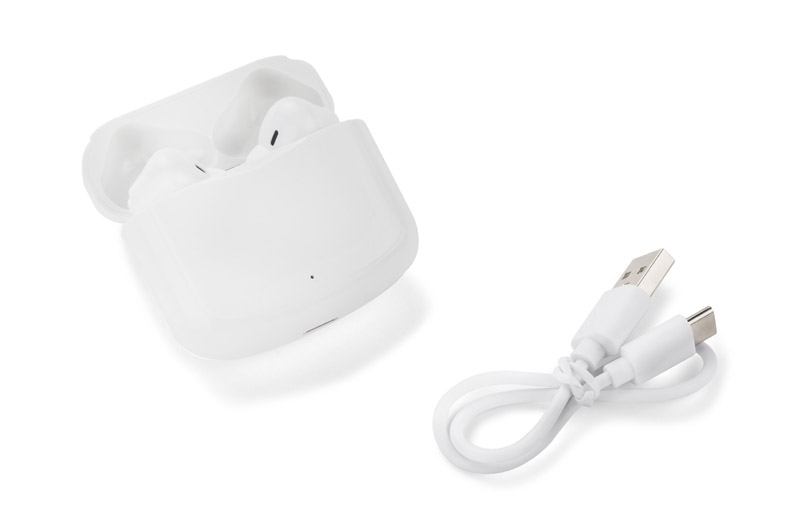 Słuchawki bezprzewodowe NIDIO mieszczą się w wygodnym etui niewielkich rozmiarów, które służy jednocześnie jako stacja ładująca. Charakteryzują się bardzo dobrą jakością dźwięku oraz eleganckim wyglądem. Wyposażone są w stację dokującą o pojemności 200 mAh, która służy do wygodnego przechowywania oraz ładowania słuchawek. Każda słuchawka posiada wielofunkcyjny przycisk dotykowy, którym można zatrzymywać i przewijać utwory oraz odbierać/kończyć połączenia. Pojemność baterii każdej słuchawki to 30 mAh, co pozwala na słuchanie muzyki przez około 3 godz. Słuchawki posiadają wbudowany mikrofon, co pozwala na prowadzenie rozmów. Dane techniczne: wersja bluetooth: 5.1, czas czuwania ok. 500 godzin.