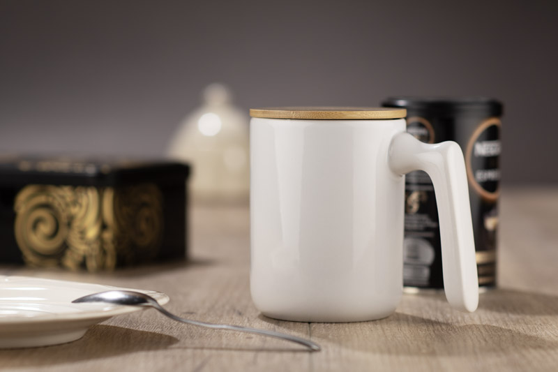 Kubek VIVIAN to perfekcyjne połączenie białej kamionki z bambusową przykrywką, która uchroni Twój napój przed przypadkowym rozlaniem, a także podtrzyma temperaturę napoju. Z jego pojemnością wynoszącą 420 ml jest idealnym towarzyszem na poranne kawowe rytuały lub herbatę w trakcie dnia.