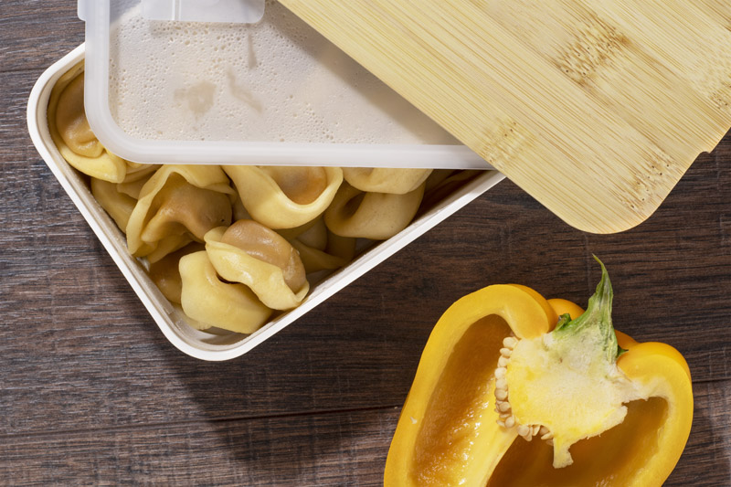 Pojemnik na żywność SINGLE wykonany jest z tworzywa, posiada bambusową przykrywkę i gumkę zapobiegającą przypadkowemu otwarciu. Posiada jedną komorę. Pojemnik może być używany w zmywarce, kuchence mikrofalowej i zamrażarce.