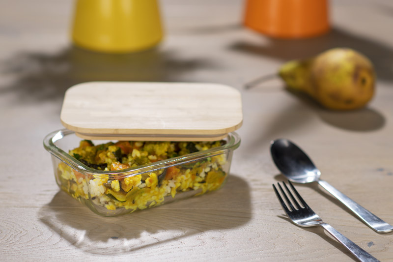 Pojemnik na żywność ALVA wykonany jest z wysokiej jakości szkła borokrzemowego. Pojemnik posiada przykrywkę z naturalnego bambusa. Można go stosować jako pojemnik lunchowy, jako pojemnik do przechowywania żywności, a ponadto można w nim podgrzewać potrawy w piekarniku lub kuchence mikrofalowej. Pojemność 430 ml.