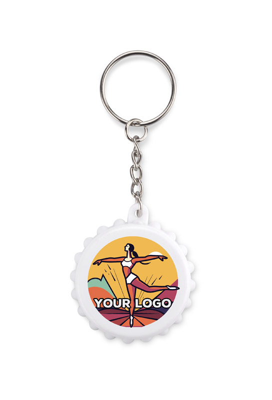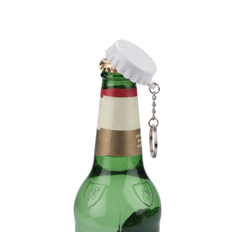 Brelok KAPSI w kształcie kapsla. Pełniący funkcję otwieracza brelok to praktyczny i stylowy dodatek, który zapewnia łatwe otwieranie butelek w dowolnym miejscu.