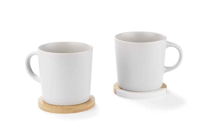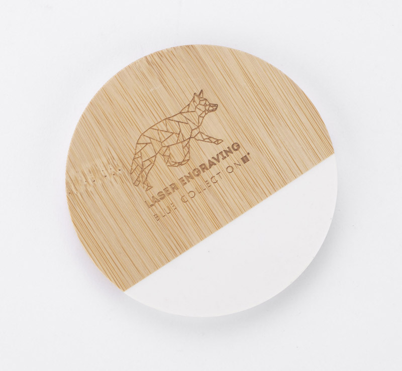 Zestaw dwóch podkładek pod kubek wykonanych z połączenia bambusa i sztucznego marmuru. Materiał jest wytrzymały i odporny na uszkodzenia. Podkładki prezentują się elegancko i z pewnością będą pasowały do niejednego wnętrza. Zapakowane w kraftowe pudełko.