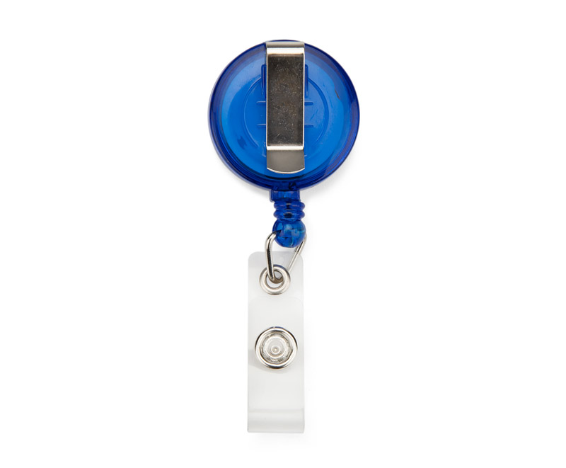 Skipass wykonany z tworzywa, z metalowym zaczepem, wysuwaną linką na której można zawiesić identyfikator lub inny dokument.
