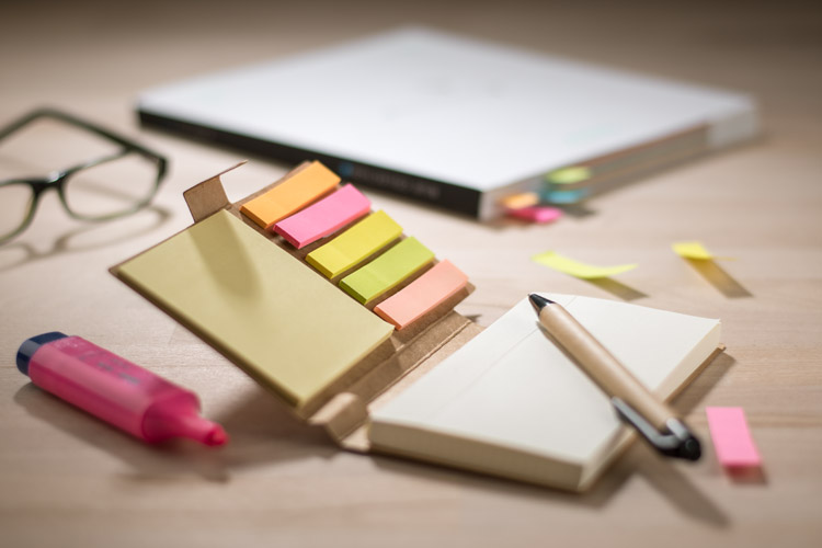 Notes z karteczkami memo oraz długopisem. Notes w oprawie tekturowej. Długopis ekologiczny wykonany z tektury i tworzywa z recyklingu. Na notesie logo nadrukujemy techniką tampodruku. Długopis z czarnym wkładem.