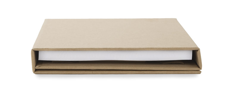 Modny, ekologiczny notes, który chowa w swoim wnętrzu linijkę, karteczki samoprzylepne, miejsce na wizytówki oraz długopis. Logo nadrukujemy na notesie.
