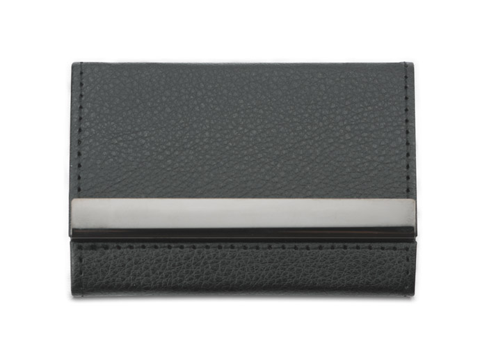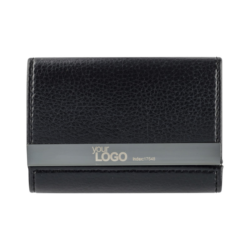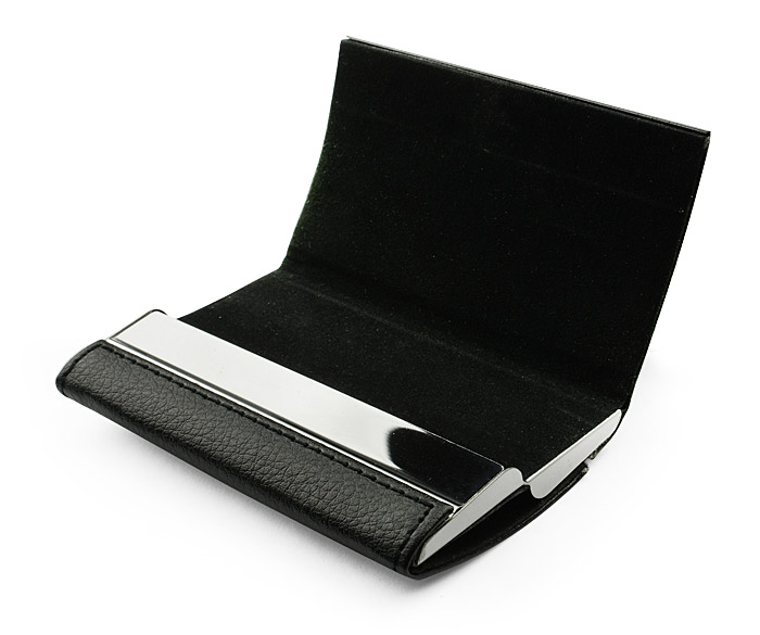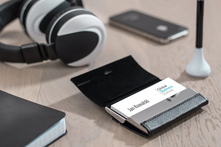 Niezwykle praktyczny wizytownik z materiału skóropodobnego (PU), dzięki któremu można przechowywać zarówno wizytówki swoje, jak i klientów. Wystarczy otworzyć właściwą przegródkę. Wizytownik pomieści 20 wizytówek (10 z kazdej strony). Grawer logo zrobimy na blaszce.