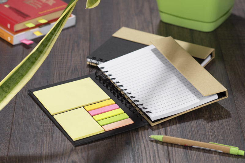 Notes MAGO B6 to funkcjonalny notatnik kołowy zamykany na magnes, idealny do codziennego użytku w biurze lub w terenie. W środku znajduje się 70 białych kartek w linie, zestaw samoprzylepnych karteczek (6 bloczków po 25 sztuk: 2 większe oraz 4 indeksujące w neonowych kolorach) oraz papierowy długopis, umieszczony w praktycznym uchwycie. Poręczny i kompletny zestaw do notowania i organizowania informacji – zawsze pod ręką.