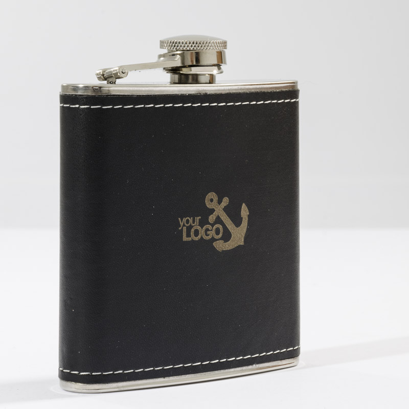 Stylowa piersiówka Banff o pojemności 6 oz (ok 180 ml) wykonana ze stali nierdzewnej, wykończona materiałem skóropodobnym (PU) . Logo wygrawerujemy na piersiówce.