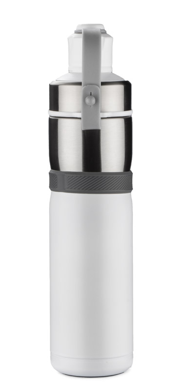 Sportowy bidon z próżnią przyda się na letnie wycieczki rowerowe bądź treningi na świeżym powietrzu. Dzięki zastosowanej do izolacji bidonu próżni utrzymuje on temperaturę napoju zarówno ciepłego jak i zimnego. Wygodne zamknięcie umocowane na pasku jest praktycznym rozwiązaniem podczas uprawiania sportu. Bidon wykonany ze stali nierdzewnej o podwyższonym standardzie.