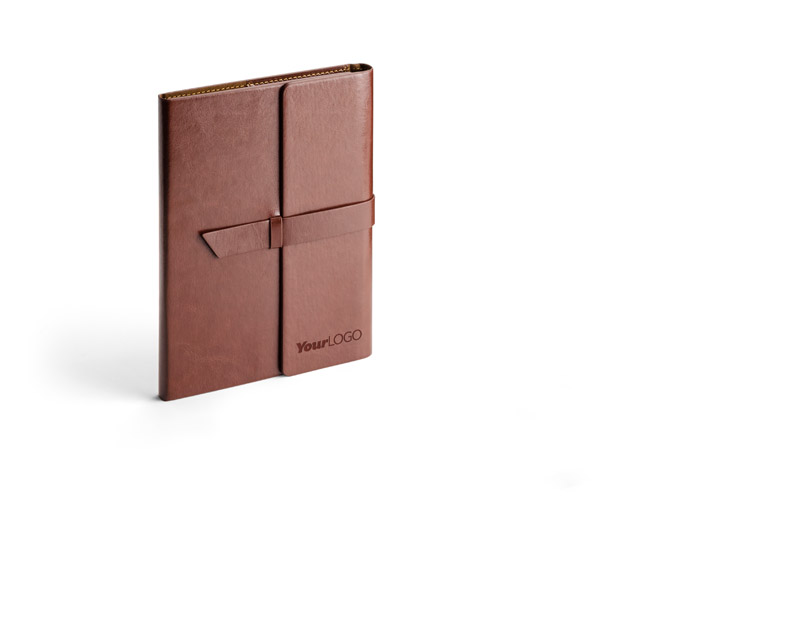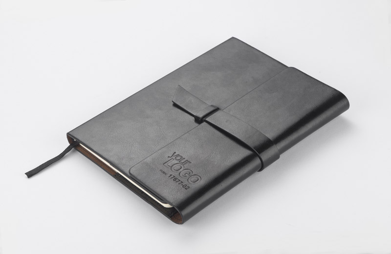 VASCO to elegancki notes formatu A5 w klasycznej okładce wykonanej z materiału skóropodobnego (PU). Notes zawiera 80 kartek w linie oraz praktyczną wstążeczkę - zakładkę. Wewnątrz okładki miejsce na 3 wizytówki, długopis oraz pamięć USB. Okładka nie jest umocowana na stałe do bloku notesu, tylko nasuwana na pierwsze kartki, co daje możliwość wymiany notesu. Notes zamykany za pomocą paska z materiału skóropodobnego (PU).