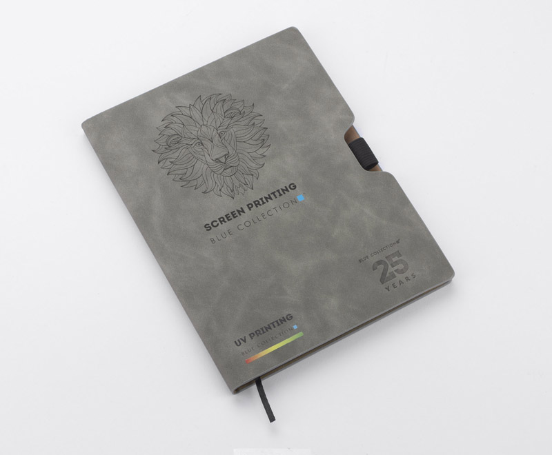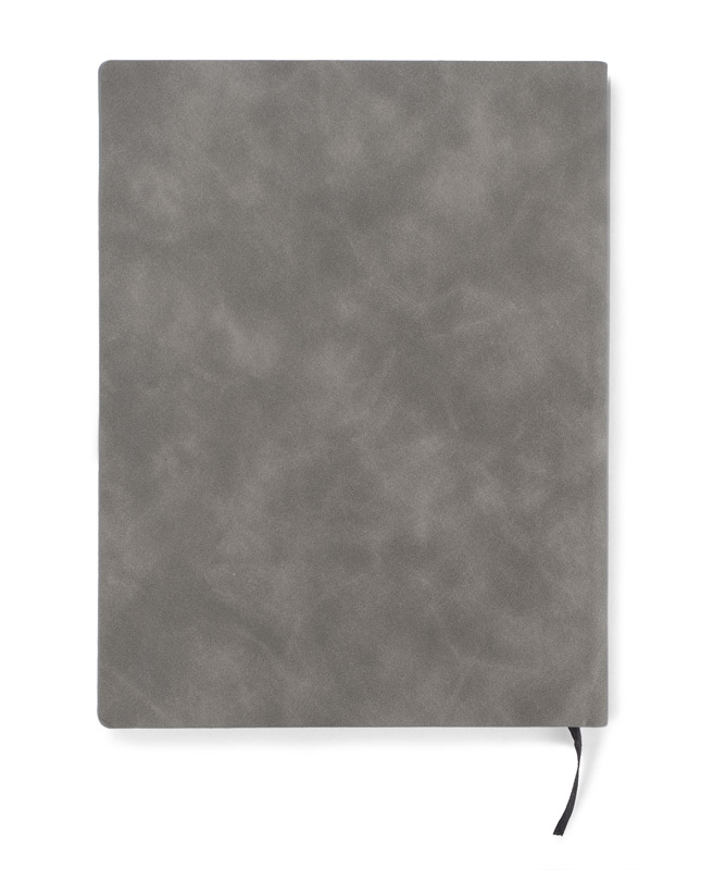 BLAKK to klasyczny notes w okładce z materiału skóropodobnego (PU) w szarym kolorze. Czarne krawędzie kartek nadają mu elegancki wygląd. Notes zawiera 80 białych kartek w linie wykonanych z papieru. Okładka posiada gumkę - uchwyt na długopis oraz czarną zakładkę - wstążeczkę.