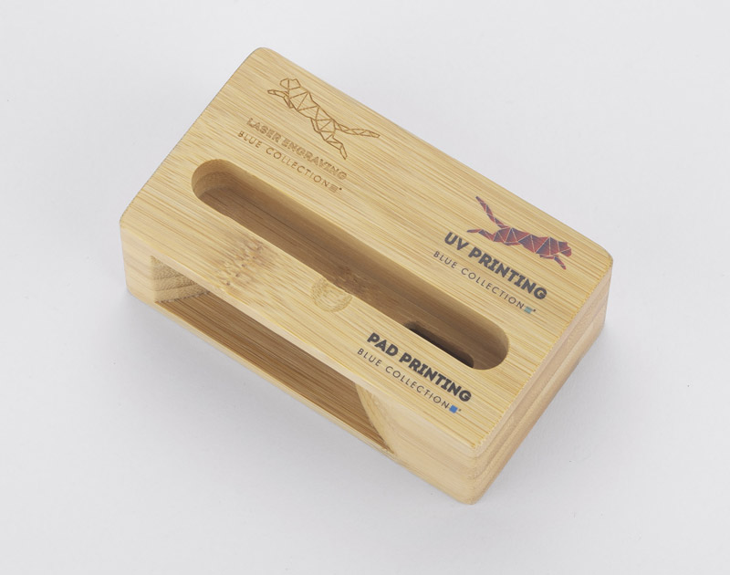 RESONA to bambusowy stojak na telefon pełniący jednocześnie funkcję wzmacniacza dźwięku. Jego wyprofilowany kształt sprawia, że dźwięk wydobywający się z telefonu umieszczonego w środku, jest głębszy i mocniejszy. Stojak zapakowany w brązowy kartonik z infografiką sugerującą jego działanie.