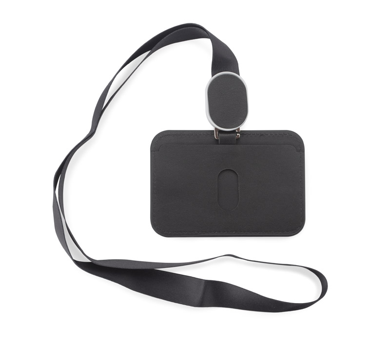 Etui na identyfikator TINO to gadżet, który zapewni Ci wygodę użytkowania każdego identyfikatora czy karty dostępu. Wykonany z wytrzymałej eko skóry z ozdobnymi przeszyciami. Dzięki rozwijanej smyczy o długości 34 cm nie będziesz musiał się schylać do czytnika czy okazania przepustki. Identyfikator zawieszony na szerokiej, przyjemnej w dotyku taśmie o długości 86cm. Posiada możliwość zmiany ułożenia z pionowego na poziome poprzez proste przepięcie zapinki smyczy. Dodatkowa kieszonka na tyle pozwoli na trzymanie wizytówek.