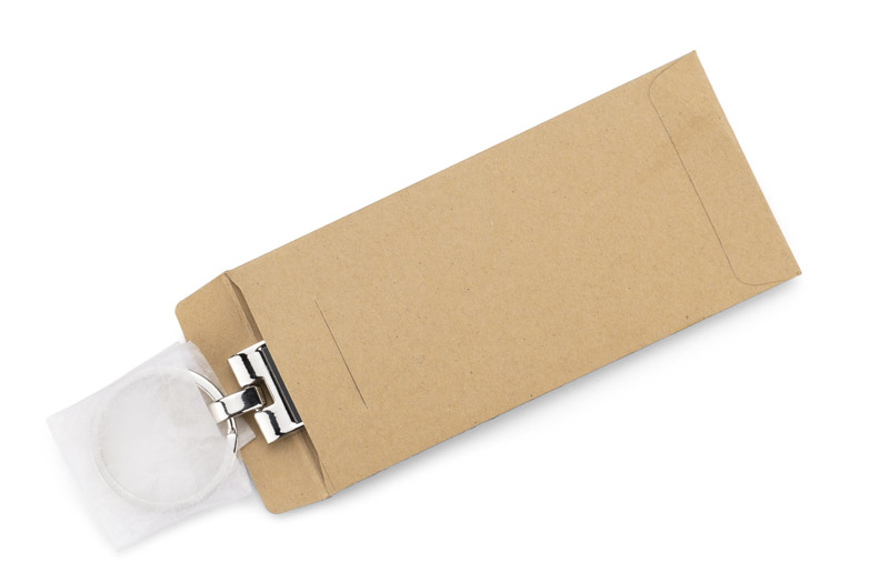 Metalowy brelok do kluczy z prostokątną, falowaną zawieszką. Logo grawerujemy na powierzchni breloka.