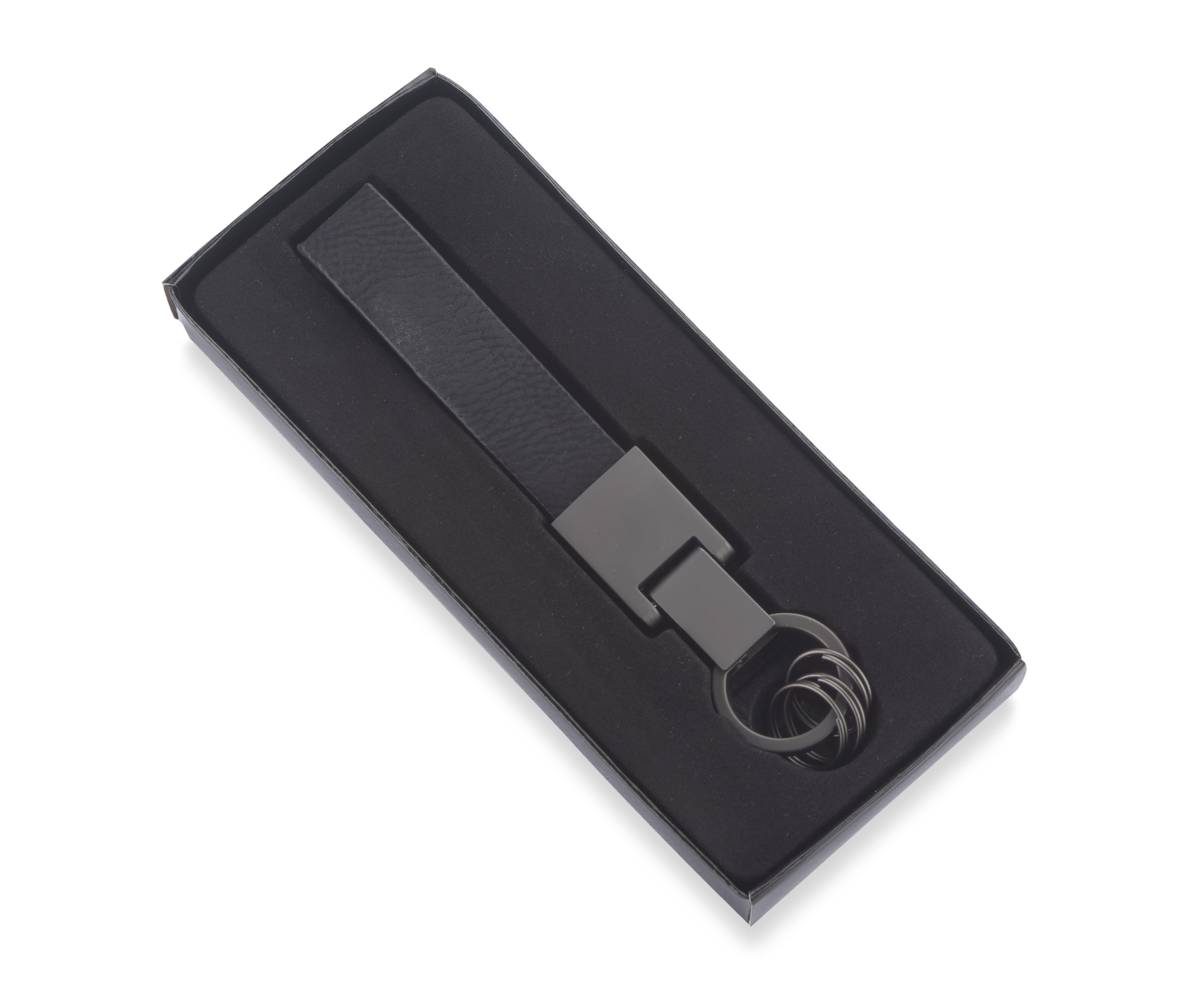 relok DERI to elegancki gadżet reklamowy wykonany z wysokiej jakości skóry ekologicznej z ciemnymi metalowymi wykończeniami. Jego minimalistyczny design oraz trzy dodatkowe kółka pozwalają na łatwe organizowanie kluczy lub przypięcie akcesoriów. Całość zapakowana jest w estetyczny kartonik, co sprawia, że brelok doskonale nadaje się na prezent firmowy.