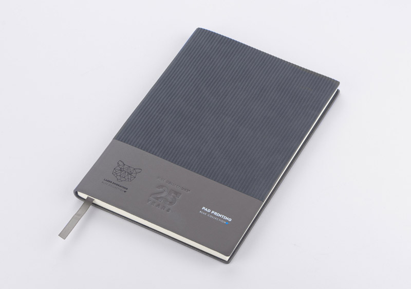 Notes FLAF w formacie A5 ma miękką okładkę łączącą materiał skóropodobny (PU) z imitacją sztruksu, co nadaje mu przyjemną, tekstylną fakturę. W środku znajduje się 80 kartek w kropki oraz praktyczna wstążka pełniąca funkcję zakładki.