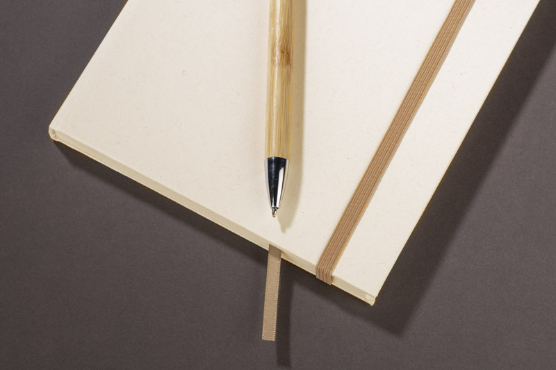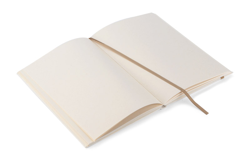 Okładka i kartki w notesie zostały wyprodukowane z kartonów po mleku. Okładka zamykana za pomocą elastycznej gumki. Wewnątrz znajduje się wstążeczka pełniąca funkcję zakładki. Format A5, 80 gładkich kartek.