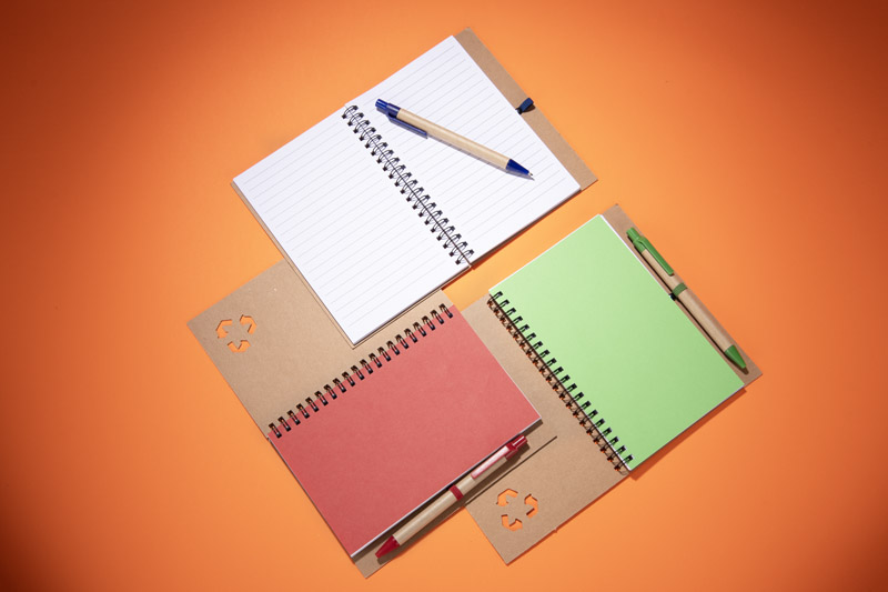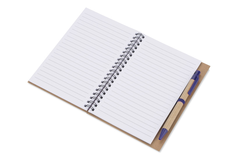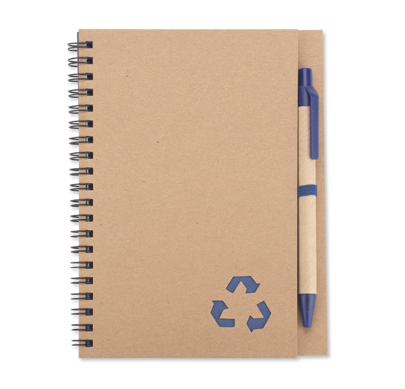 Notes SERENO na spirali w klasycznej, papierowej okładce. Posiada 70 kartek w linie. Do notesu dołączony jest w wyprofilowanym miejscu długopis, którego korpus wykonany jest z papieru. Wykończenia długopisu pasują kolorystycznie z przekładką notesu. Wkład w długopisie w kolorze niebieskim.