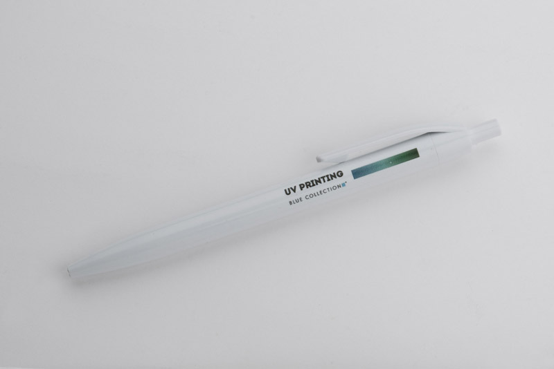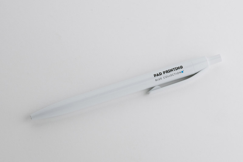 Plastikowy długopis BASIC z niebieskim wkładem. Logo nadrukujemy na korpusie.