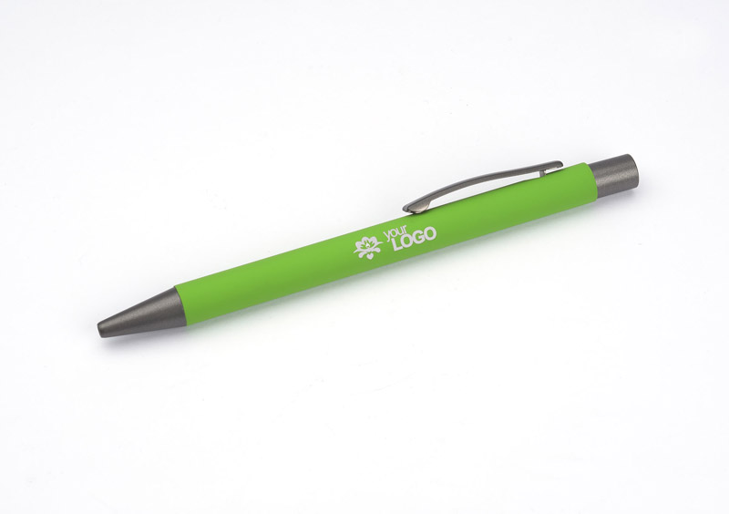 Długopis GOMA to prosty design połączony z przyjemną w dotyku gumowaną powierzchnią. Całość jest utrzymana w lekkich, matowych barwach. Wykonany z aluminium. Wykończenia w kolorze grafitowym. Wkład w kolorze czarnym.