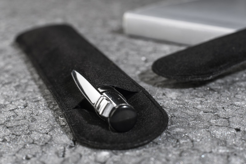 Futeralik na jeden artykuł piśmienny, wykonany z weluru. Pasuje do wszystkich modeli długopisów.
