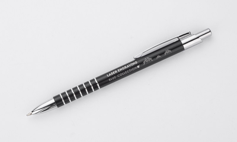 Prosty długopis wykonany z aluminium ozdobiony szerokimi ringami. Logo wygrawerujemy.