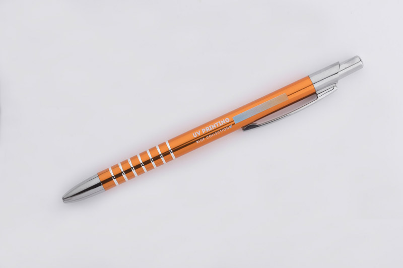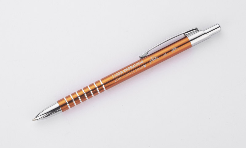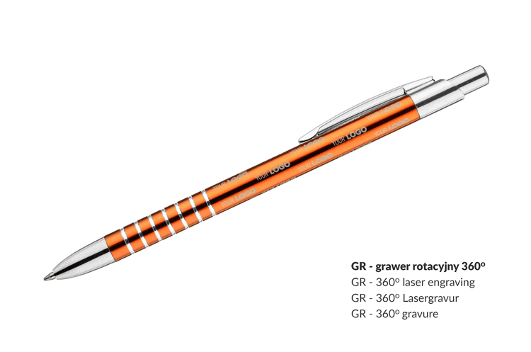 Prosty długopis wykonany z aluminium ozdobiony szerokimi ringami. Logo wygrawerujemy.