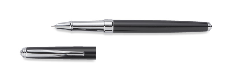NEVADA to klasyczne, eleganckie pióro wieczne wykonane z metalu. Korpus pokryty farbą. Wykończenia chromowane. Stalówka gustownie schowana wewnątrz. Pióro wyposażone w tłoczek. Możliwość stworzenia zestawu piśmienniczego z długopisem o tym samym wzornictwie.