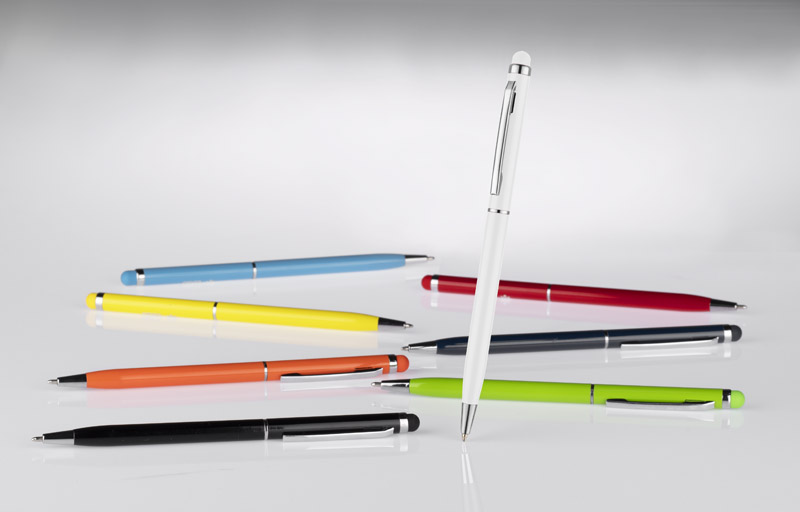 Nowa, ulepszona wersja dobrze znanego modelu. TIN 2 to cienki, metalowy długopis z kolorową końcówką do ekranów dotykowych (touch). Długopis posiada mechanizm typu ""twist"". Wkład w kolorze niebieskim.
