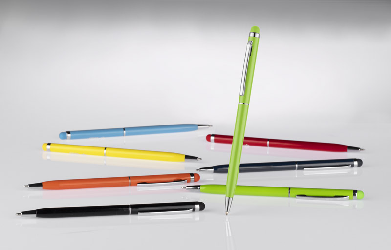 Nowa, ulepszona wersja dobrze znanego modelu. TIN 2 to cienki, metalowy długopis z kolorową końcówką do ekranów dotykowych (touch). Długopis posiada mechanizm typu ""twist"". Wkład w kolorze niebieskim.