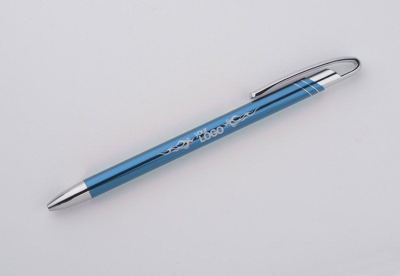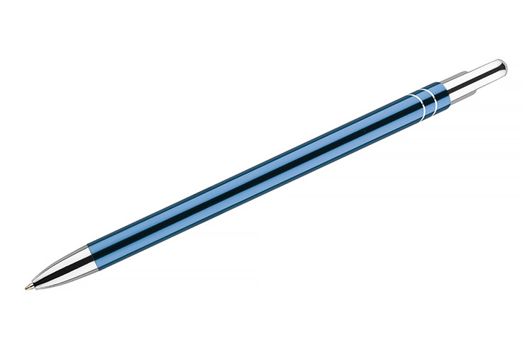 Cienki i zgrabny metalowy długopis w kolorze o metalicznym wykończeniu. Klip i końcówki w kolorze srebrnym chromowanym. AVALO wyróżnia się wśród podobnych długopisów oryginalnym projektem klipu. Korpus ozdobiony został dwoma skośnymi paskami w kolorze srebrnym. Wkład o grubości 0,7 mm w kolorze niebieskim.