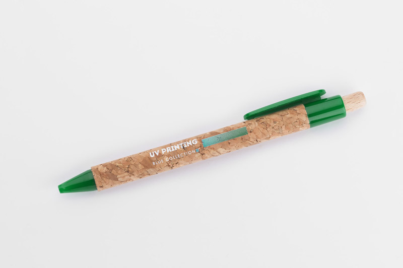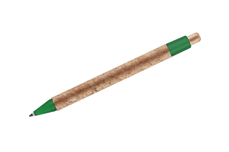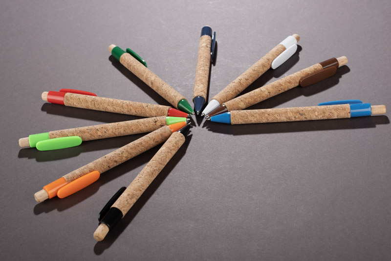 Długopis KORTE nawiązuje swoim wyglądem do idei recyclingu. Korpus został wykonany z naturalnego korka, a przycisk z drewna. Wykończenia z tworzywa sztucznego w żywych kolorach dodają mu uroku. Wkład w kolorze niebieskim.