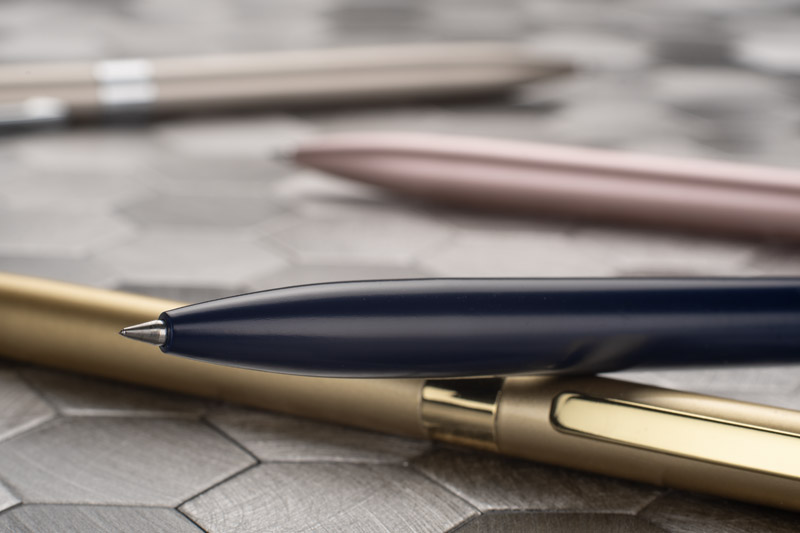 Długopis GELLE to elegancja i wygoda pisania w jednym. Długopis wykonany jest z metalu z wykończeniami chromowanymi lub złoconymi i posiada mechanizm typu twist. Żelowy wkład o grubości 0,5 mm w kolorze niebieskim.