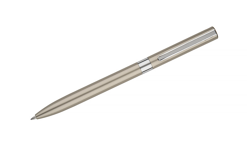 Długopis GELLE to elegancja i wygoda pisania w jednym. Długopis wykonany jest z metalu z wykończeniami chromowanymi lub złoconymi i posiada mechanizm typu twist. Żelowy wkład o grubości 0,5 mm w kolorze niebieskim.