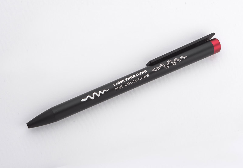 ALI to wyjątkowy długopis umożliwiający wykonanie znakowania w kolorze zbliżonym do końcówki długopisu oraz całkowicie zaskakującego grawerowania w dwóch kolorach - w kolorze zbliżonym do końcówki długopisu oraz białym (kolor aluminium). Czarny metalowy korpus oraz czarne wykończenia stanowią idealne tło dla kolorowego grawerowania. Długopis automatyczny. Wkład typu X20 o grubości 1.0 mm w kolorze niebieskim.