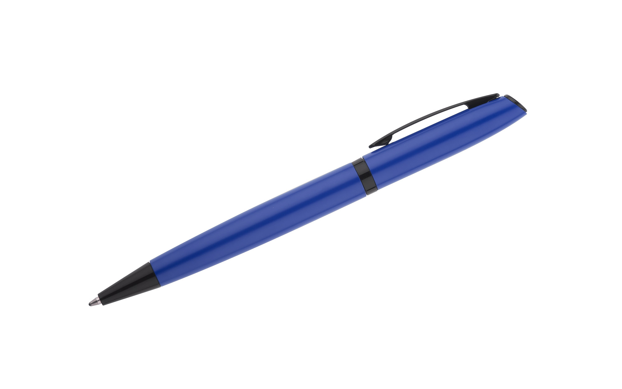 RIO to elegancki długopis zapakowany w papierowy kartonik dopasowany kolorystycznie do obudowy długopisu. Matowy kolor ładnie kontrastuje z czarnymi wykończeniami. Długopis z mechanizmem typu twist, z wkładem typu G2 w kolorze niebieskim.