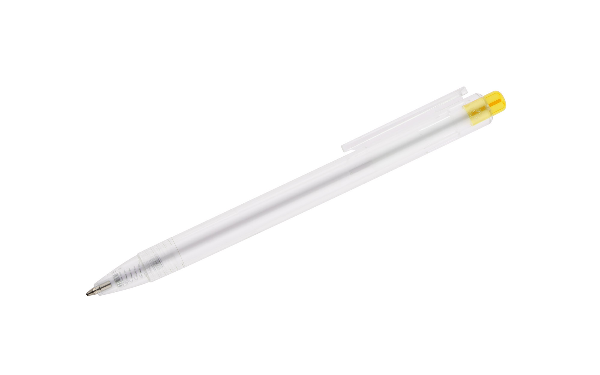 Długopis KLIIR powstał w całości z tworzywa PET po recyklingu (rPET). Ten prosty gadżet pokazuje nam, jak świadomie możemy gospodarować odpadami z tworzywa sztucznego i tworzyć z nich nowe przydatne przedmioty. Przezroczysty bezbarwny korpus długopisu ładnie połączony jest z przyciskiem w żywych kolorach. Długopis automatyczny, wkład typy G2 w kolorze niebieskim.