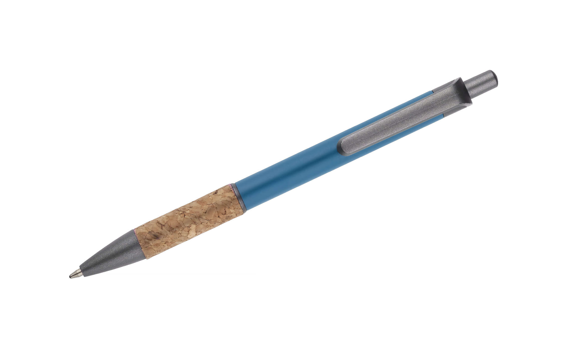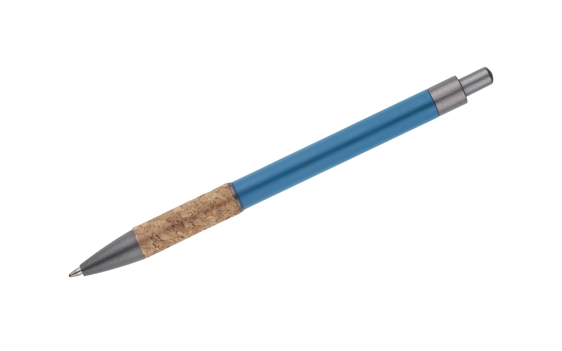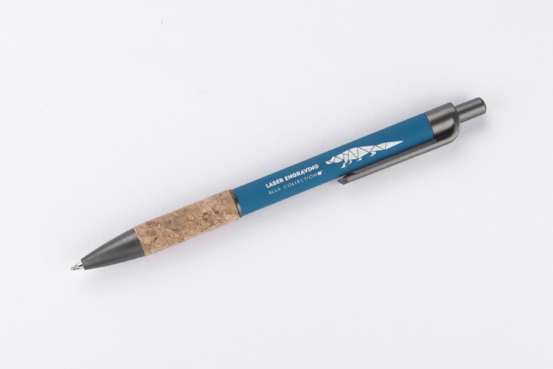 Długopis KUBOD to klasyczny model o prostym, eleganckim kształcie, idealny do znakowania. Aluminiowy korpus pokryty został matową powłoką soft touch, która zwiększa komfort użytkowania. Naturalny korek w części chwytnej przyciąga uwagę i wyróżnia produkt na tle standardowych modeli. Metaliczne akcenty z tworzywa dodają całości nowoczesnego charakteru. Długopis posiada mechanizm automatyczny i jest wyposażony w niebieski wkład typu X20 (wymienny, niedostępny w naszej ofercie).