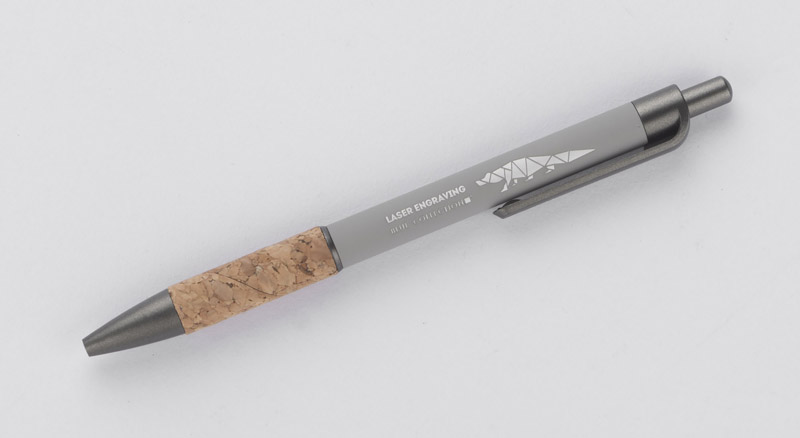 Długopis KUBOD to klasyczny model o prostym, eleganckim kształcie, idealny do znakowania. Aluminiowy korpus pokryty został matową powłoką soft touch, która zwiększa komfort użytkowania. Naturalny korek w części chwytnej przyciąga uwagę i wyróżnia produkt na tle standardowych modeli. Metaliczne akcenty z tworzywa dodają całości nowoczesnego charakteru. Długopis posiada mechanizm automatyczny i jest wyposażony w niebieski wkład typu X20 (wymienny, niedostępny w naszej ofercie).