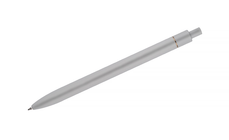 Stylowy długopis aluminiowy z matowym wykończeniem i klipem w kolorze złotym.