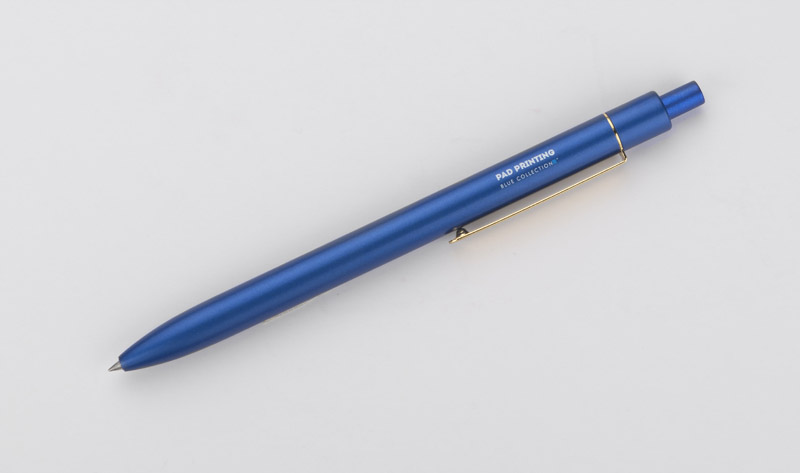 Stylowy długopis aluminiowy z matowym wykończeniem i klipem w kolorze złotym.
