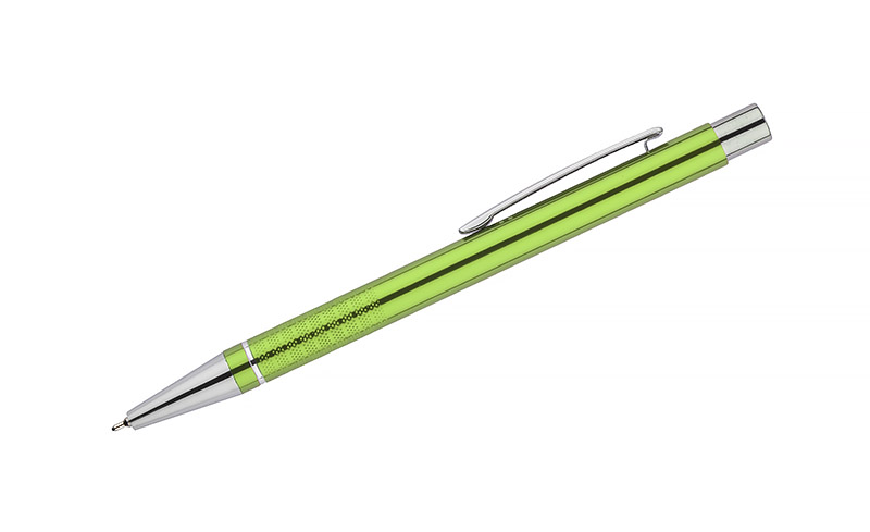 Długopis BONITO to elegancki metalowy długopis w metalicznych kolorach z chromowanymi wykończeniami. Wykonany z wysokiej jakości aluminium, korpus długopisu ozdobiony jest srebrnym ringiem oraz paskami o delikatnie chropowatej strukturze. Długopis wyposażony jest w wkład z tuszem półżelowym w kolorze czarnym o grubości 0,7 mm.