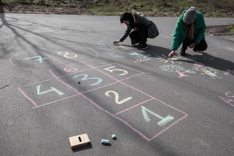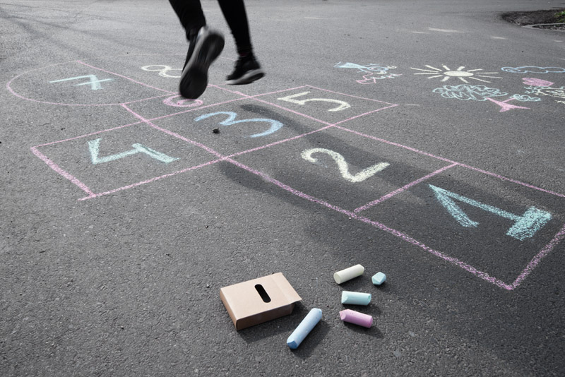 Kolorowa kreda w 4 kolorach zapakowana w brązowy kartonik. Idealna do zabawy na podwórku jak i podczas różnych eventów.
