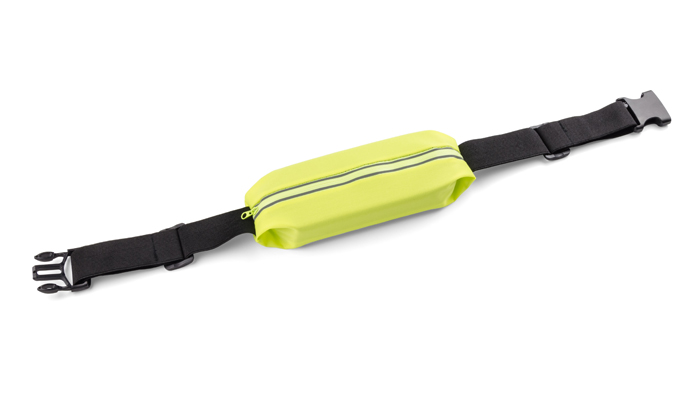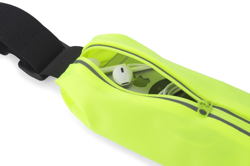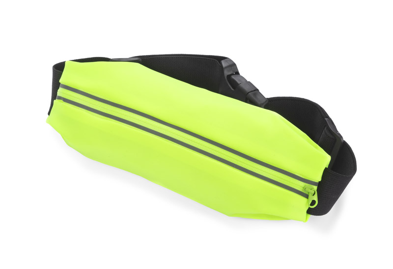 Sportowa elastyczna torebka biodrowa TROTE przyda się każdemu kto lubi aktywnie spędzać czas. Jaskrawy kolor oraz elementy z taśmy odblaskowej zapewnią każdemu użytkownikowi widoczność po zmroku. Torebka wyposażona jest w kieszonkę z wygodnym okienkiem na telefon, dzięki któremu łatwo i szybko można sprawdzić ważne informacje na telefonie. Dodatkowo torebka ma wyjście na słuchawki.