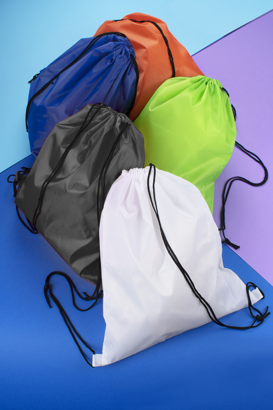 Wykonany z poliestru 210D użyteczny worek. Aby go zamknąć wystarczy pociągnąć z sznurki. Logo naniesiemy metodą sitodruku. Maksymalna wytrzymałość worka ok 2 kg.